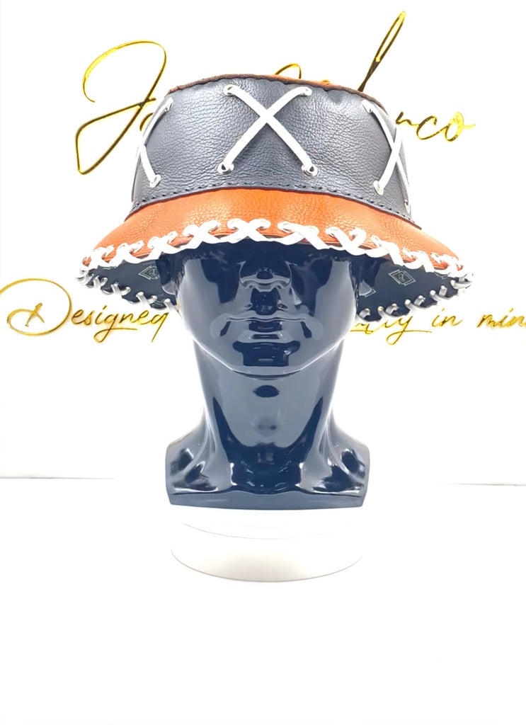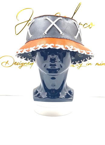 Silver Metallic Leather Bucket Crown w/ Black Lace