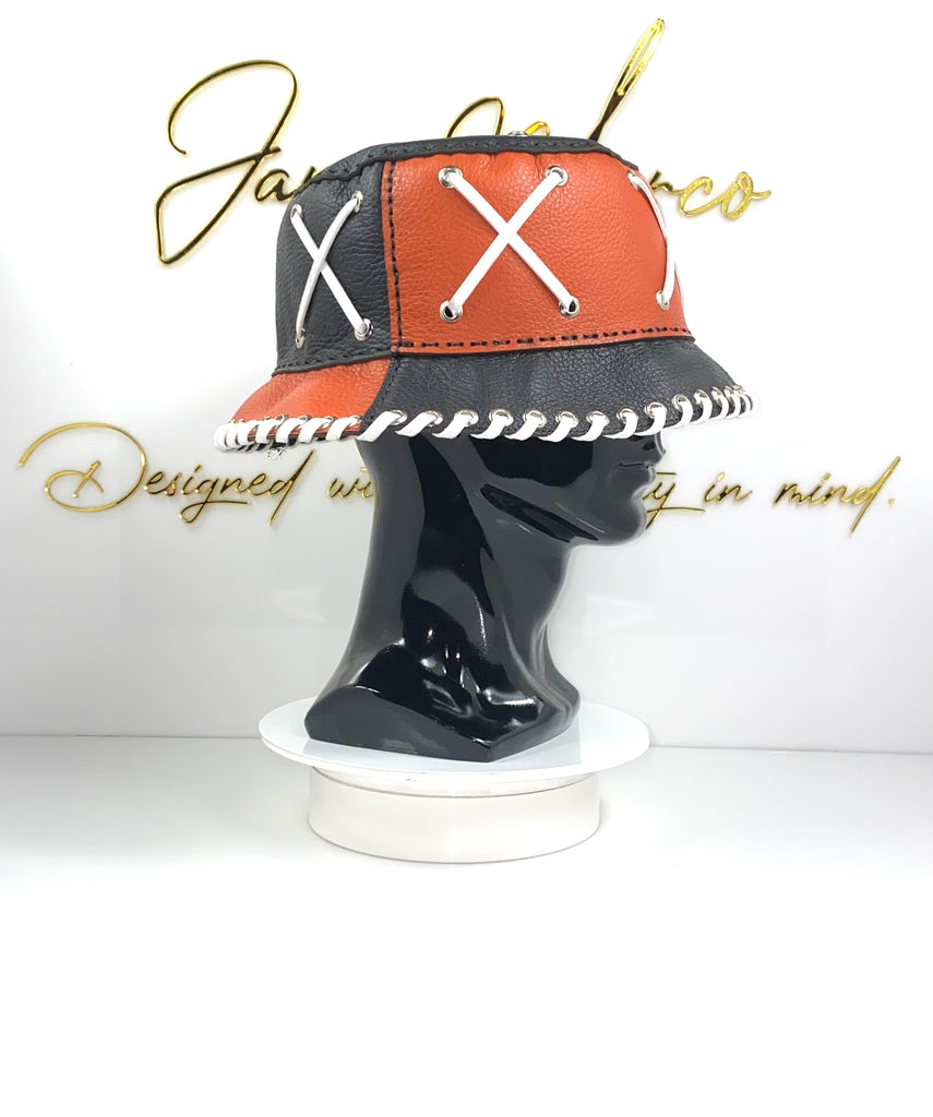 Orange Leather Bucket Crown w/ Black & White Lace