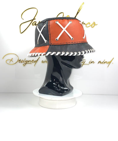 Black & Orange Leather Bucket Crown w/ White Lace
