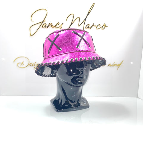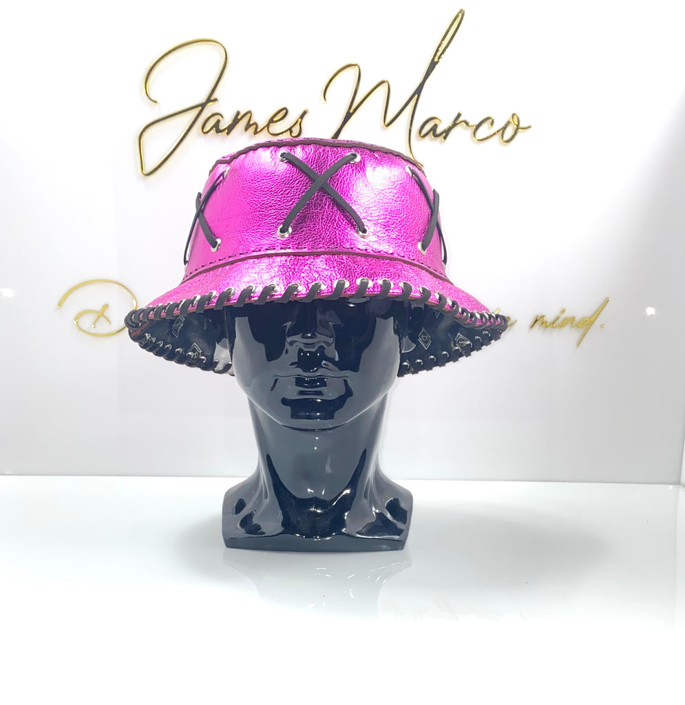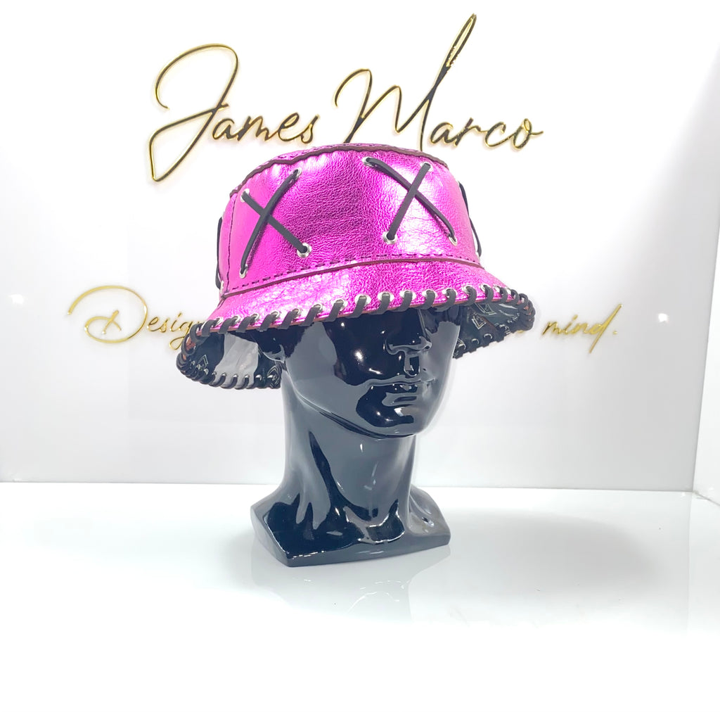 Silver Metallic Leather Bucket Crown w/ Black Lace