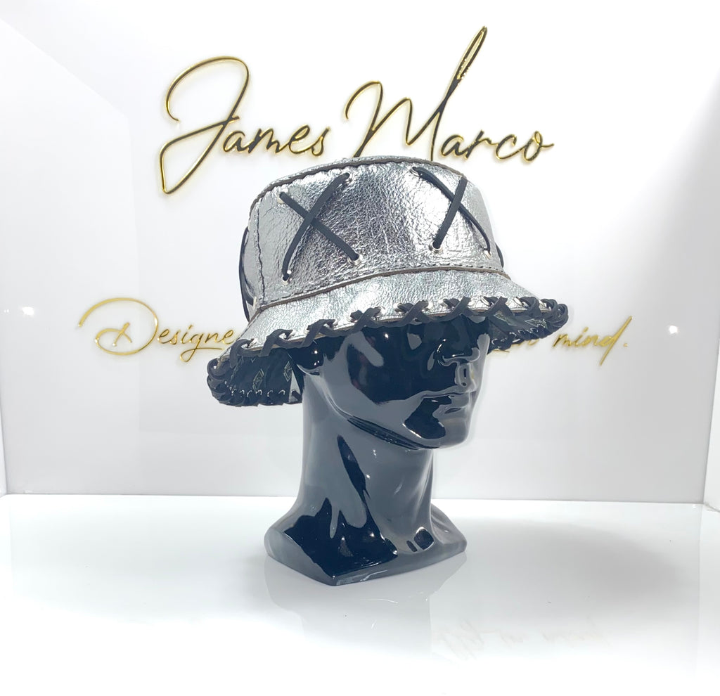 Silver Metallic Leather Bucket Crown w/ Black Lace